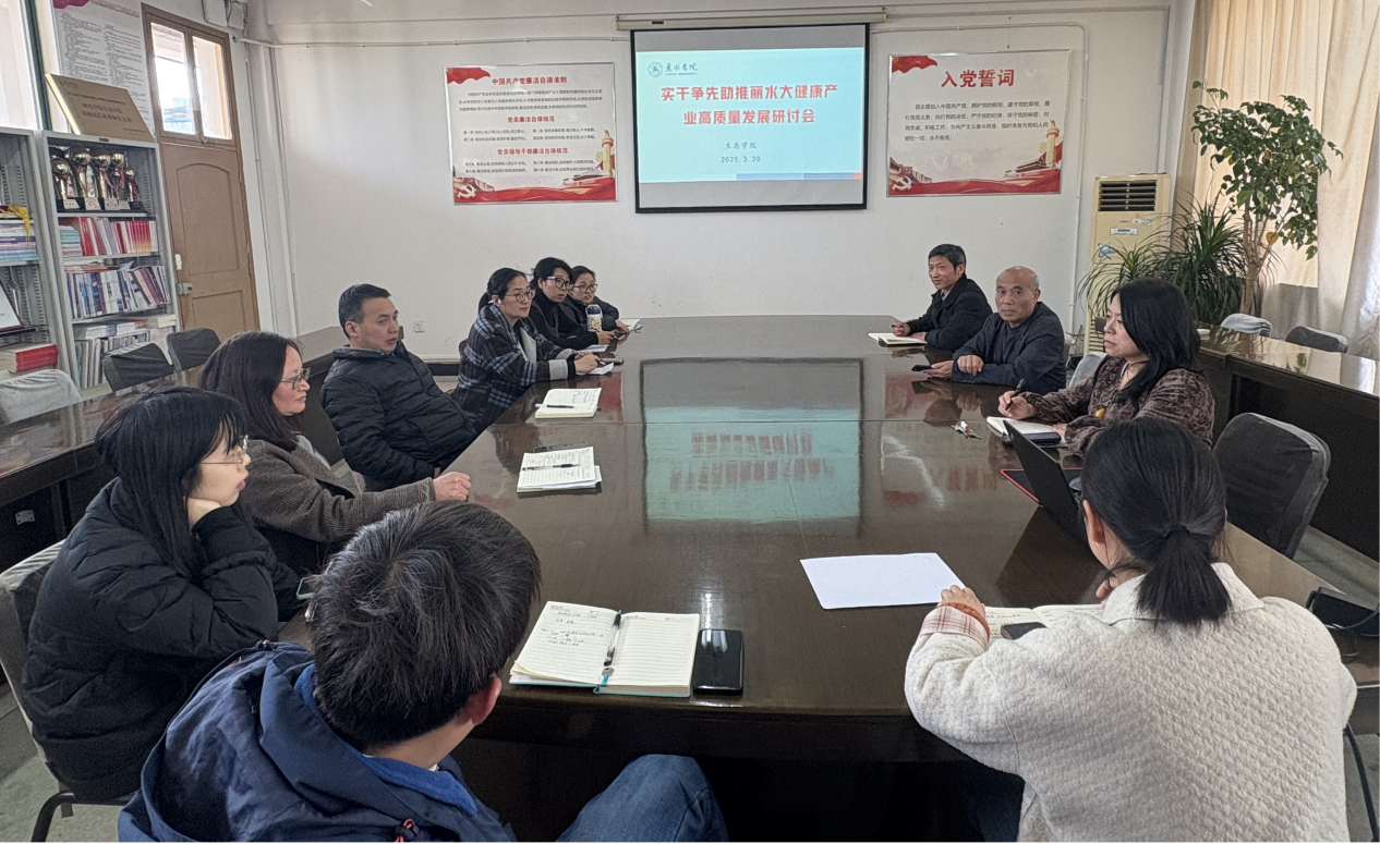 2025年3月20日下午,生态学院召开“实干争先,助推丽水大健康产业高质量发展研讨会”。会议由生态学院党委书记夏更寿主持,聚焦“十五五”规划编制、学科建设与畲药产业发展等核心议题,围绕《丽水市中医药大健康产业发展三年行动方案(2023-2025年)》实施成效与未来方向展开深入研讨,旨在推动生态学科与地方产业深度协同,助力丽水打造“浙江现代中医药大健康产业新高地”、“长三角中医药康养目的地”和“全国植物提取科创高地”。副院长朱强根、副书记吴庆红及生态与生物资源系骨干教师参会并积极讨论。