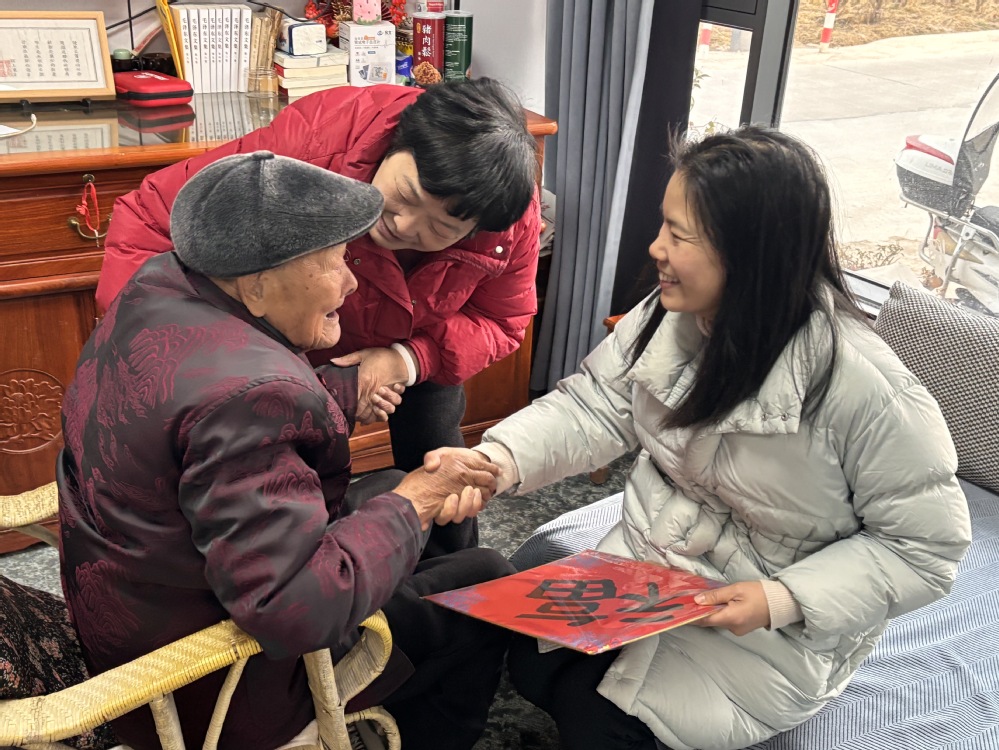 为传递学院对退休老教师的深切关怀,近日,我院党委书记王艳与学生科辅导员一同前往缙云县东方镇走访慰问学校退休百岁老人丁文瑞,为老人送去温暖与祝福。