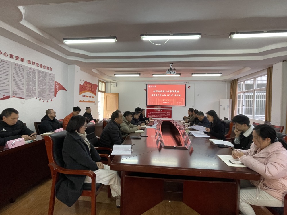 为深入强化思想引领,推动学院高质量发展,12月19日下午14:30,材料与能源工程学院委员会在教3栋216会议室召开党委理论学习中心组(扩大)学习会,专题学习习近平总书记系列重要讲话及指示批示精神,研究部署学院治理规范化建设与高质量发展路径。学院党委理论学习中心组全体成员、各党支部书记及部门负责人参加会议,会议由学院党委书记王艳主持。
